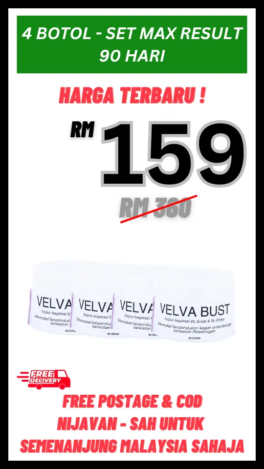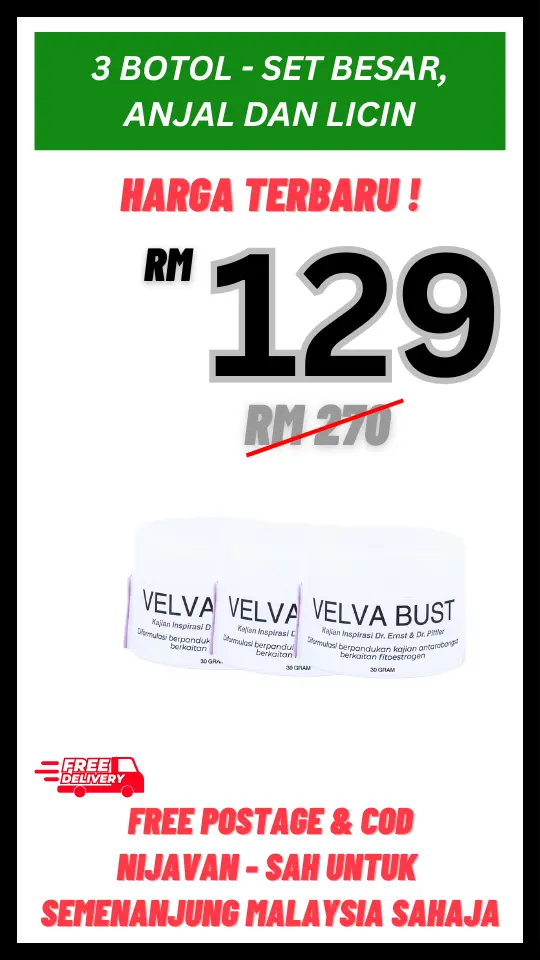 Ramai pelanggan kami berkongsi testimoni positif selepas guna Velva Bust secara konsisten. Namun, keberkesanan bergantung kepada tubuh individu dan cara penggunaan. Kami tidak janji kesan segera, tapi dengan penggunaan berterusan hasil lebih mudah dirasai.